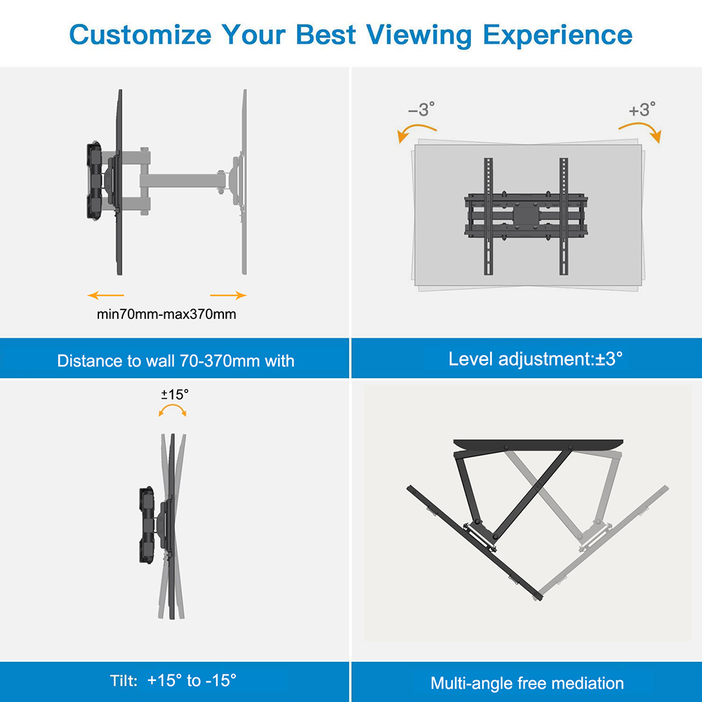 Vesa 400 x 400, Tilt 15 degrees, Απόσταση από τοίχο 70 - 370 mm |