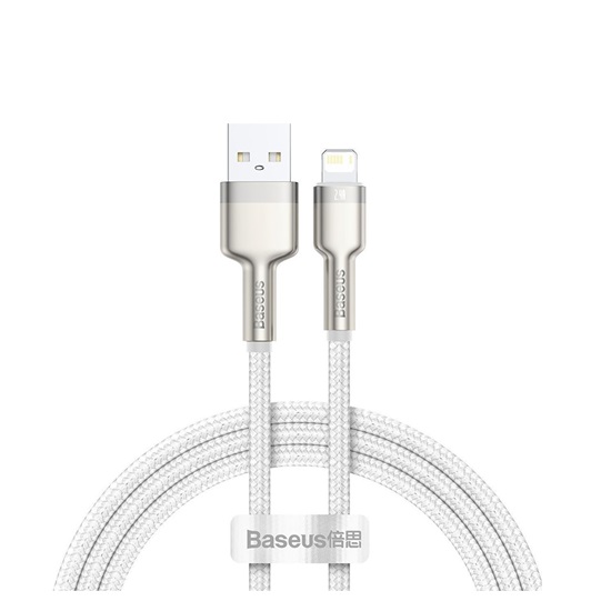 Lightning καλώδιο της εταιρίας Baseus που συνδέει την Apple συσκευή με υποδοχή Lightning στη θύρα USB του υπολογιστή ή του φορτιστή για συγχρονισμό και φόρτιση.