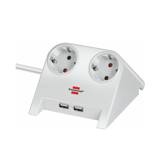 Brennenstuhl Desktop-Power USB-Charger with 2x USB-2.0 charger 2100mA 2-way socket, white polished 1.8m H05VV-F 3G1.5 (1153520222) (BNN1153520222)