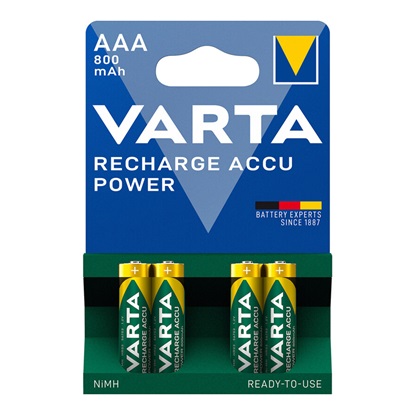 Οι επαναφορτιζόμενες μπαταρίες Ni-MH Ready2Use της Varta με χωρητικότητα 800mAh για άμεση χρήση και τάση 1.2V, είναι ιδανικές για ασύρματα ποντίκια, καθώς και άλλες μικροσυσκευές όπως τηλεκοντρόλ, φακούς, παιχνίδια κι είναι συμβατές με όλους τους φορτιστές.