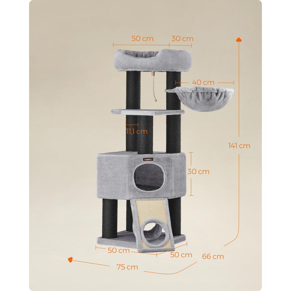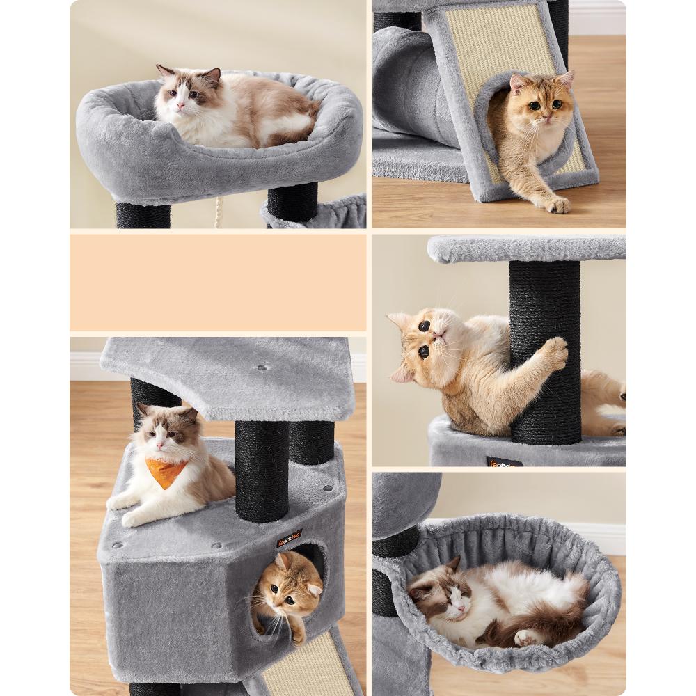 Το FEANDREA PCT02W είναι ένα πολυτελές και σταθερό δέντρο για γάτες, ιδανικό για μεγάλες φυλές ή για σπίτια με πολλές γάτες. Ακολουθούν τα βασικά χαρακτηριστικά του: