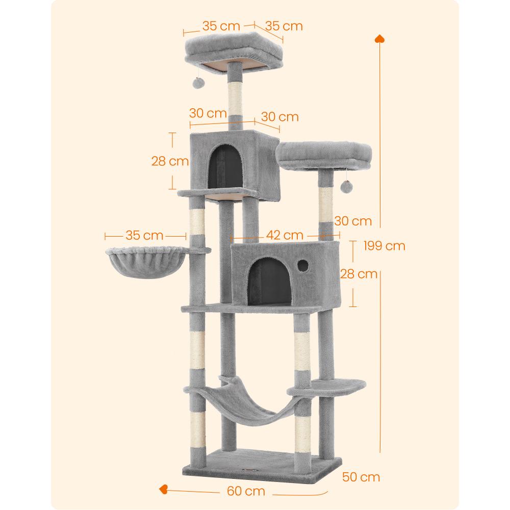 Το FEANDREA PCT196W01 Cat Tower είναι ένα XXL γκρι γατόδεντρο ύψους 199 cm, σχεδιασμένος για να προσφέρει άνεση και ψυχαγωγία σε πολλές γάτες ταυτόχρονα.