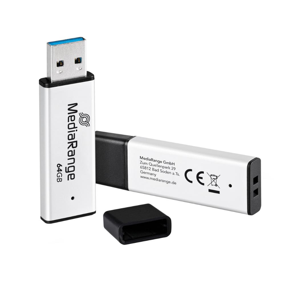 USB Flash Memory Drive MediaRange USB 3.2 Gen 1 Υψηλής Απόδοσης με προστατευτικό καπάκι, Ασημί/Μαύρο, 64GB