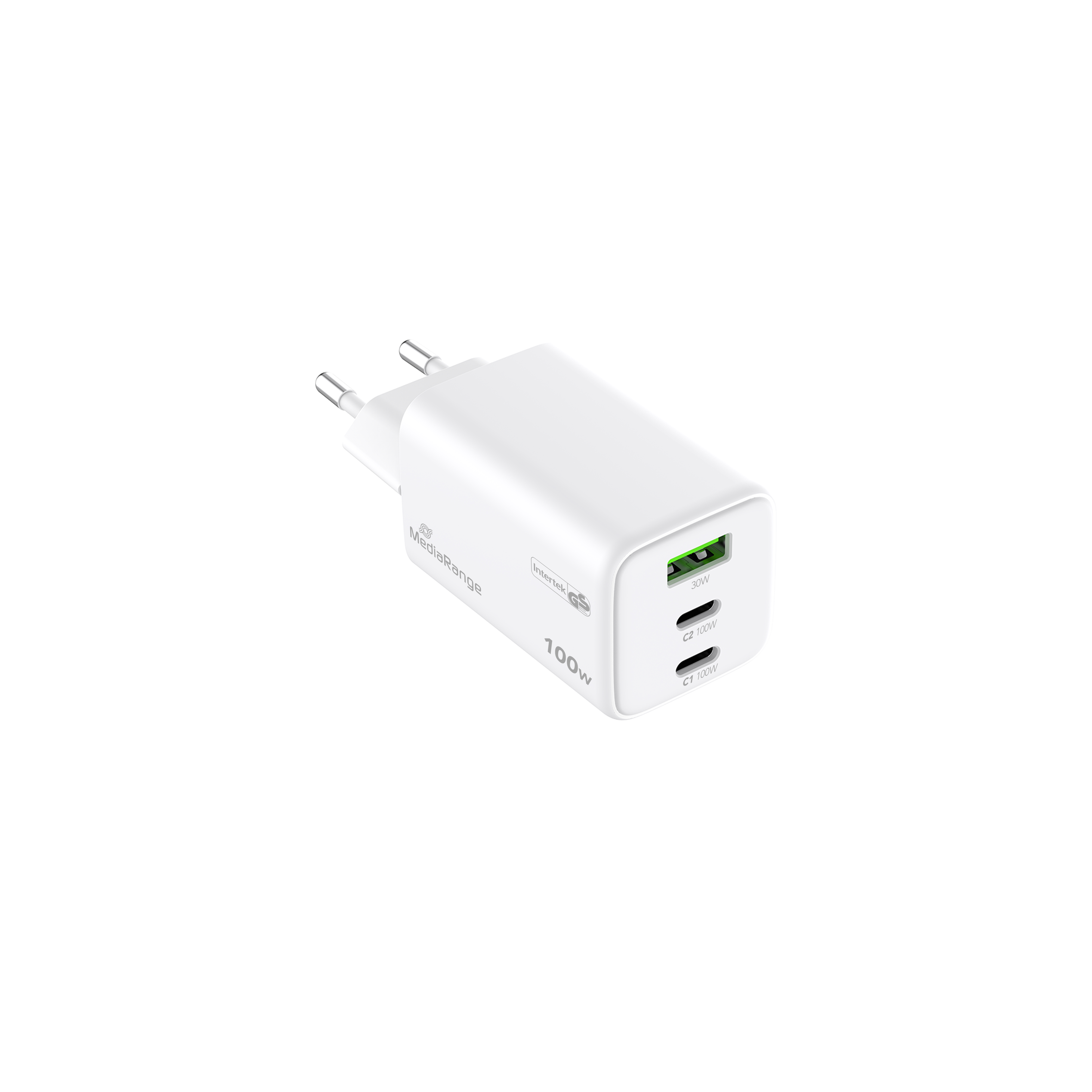 Ο MediaRange MRMA123 είναι φορτιστής τοίχου με ισχύ έως 100W, εξοπλισμένος με 2 θύρες USB-C και 1 θύρα USB-A, υποστηρίζοντας τεχνολογίες USB-C® Power Delivery 3.0, Quick Charge™ 3.0 και PPS. Χάρη στην τεχνολογία GaN, προσφέρει υψηλή απόδοση σε μικρότερο μέγεθος και με χαμηλότερη θερμοκρασία λειτουργίας, ιδανικός για smartphones, tablets και laptops123.