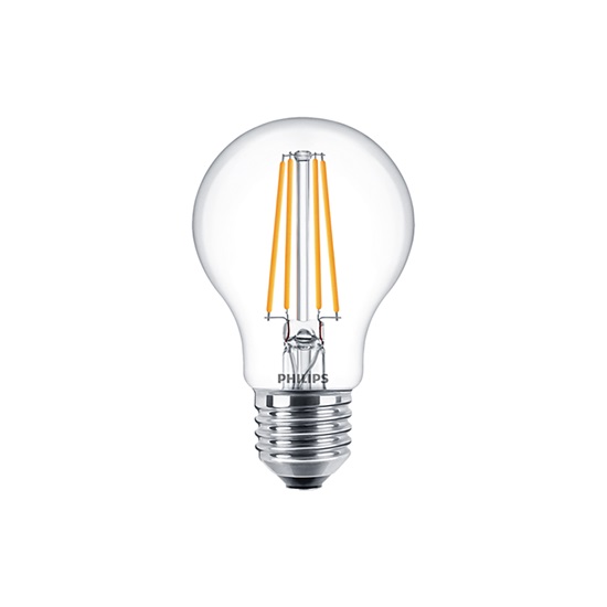 With this Philips 7W filament LED bulb you can replace your traditional 60W incandescent bulb. The pear-shaped bulb is made of clear glass and therefore the LED filaments are clearly visible. The bulb has a large fitting (E27) and can be used as general lighting in any living space thanks to the light output of 806 lumen. The distribution of the warm white light (2700K) is pleasant and comfortable for the eyes. Due to the average lifespan of 15 years and a very low energy consumption, this LED bulb is a sustainable choice.