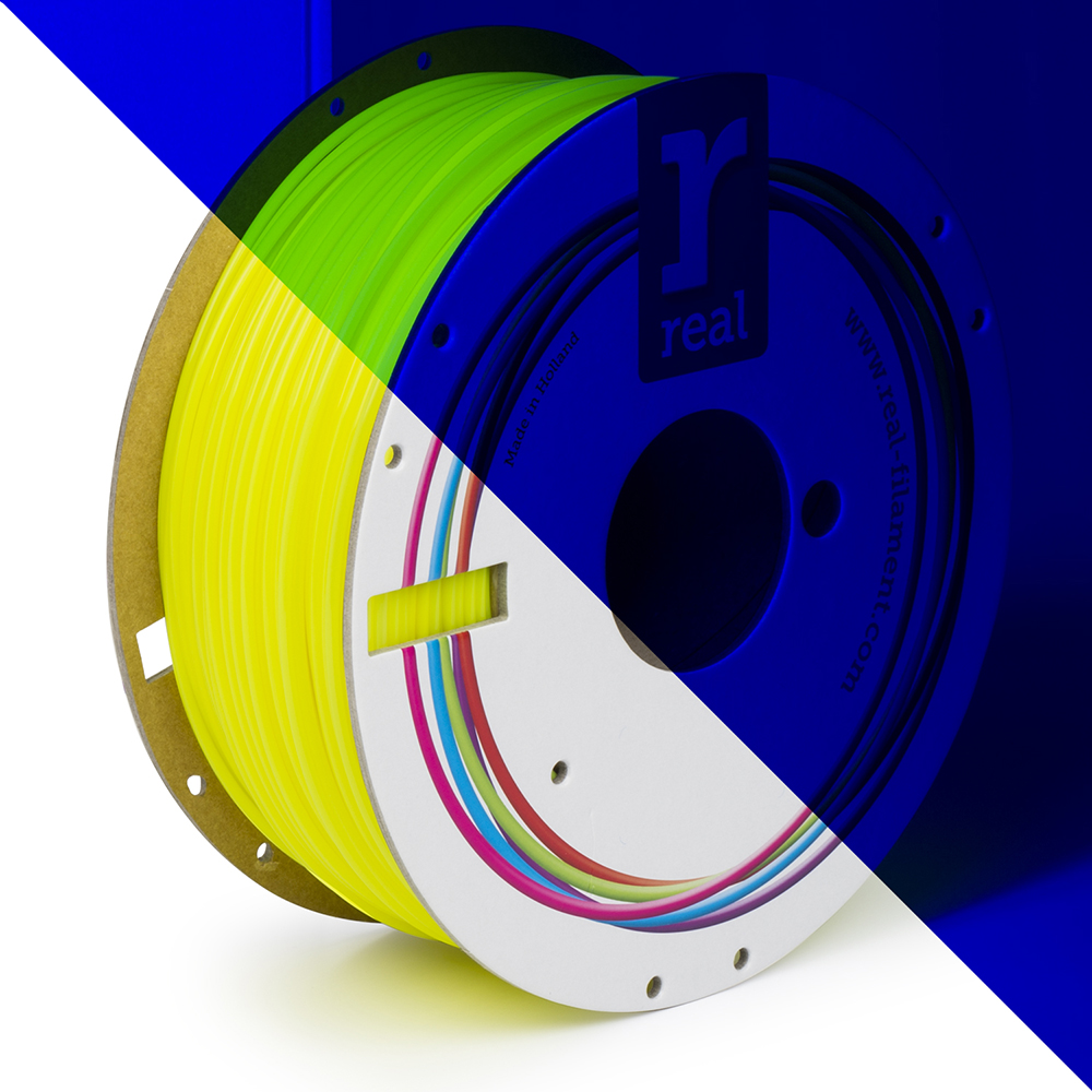 PLA filament Fluorescent Yellow 2.85 mm 1000 g for 3D printers is of superior quality, produced in The Netherlands. Real filaments guarantees that the PLA is high-quality and diameter consistent filament, giving you the best 3D printing experience. PLA is great for beginners to 3D printing, but also novices will find it great to use, as it is easy to work with while still give stunning results. PLA filament is available in multiple colors, but also different types are available within the Real brand.