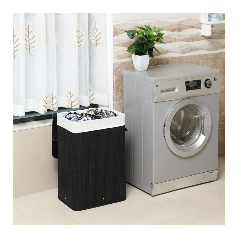 Το καλάθι απλύτων, από την εταιρία Songmics, είναι κατασκευασμένο από φυσικό μπαμπού, ελαφρύ φιλικό προς το περιβάλλον και ελαφρύ, το οποίο αντέχει στις χρήσεις χωρίς να παραμορφώνεται. Στο εσωτερικό διαθέτει βαμβακερή επένδυση, αναπνεύσιμη, η οποία κλείνει με κορδόνι για να μπορείτε να μεταφέρετε τα ρούχα με άνεση στο πλυντήριο.