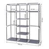 Η ντουλάπα, από την εταιρία Songmics, διαθέτει μεταλλικό σκελετό, αδιάβροχο και εξαιρετικά ανθεκτικό στη σκουριά και τις χρήσεις. Έχει κομψό σχεδιασμό και υφασμάτινο κάλυμμα ώστε να προφυλάσσει τα ρούχα σας από τη σκόνη. Αποτελείται από 7 συνολικά ράφια και 2 ράβδους για κρεμάστρες με αρκετό χώρο στο κάτω μέρος στο οποίο μπορείτε να βάλετε παπούτσια, κουτιά αποθήκευσης ή ακόμη και τσάντες.