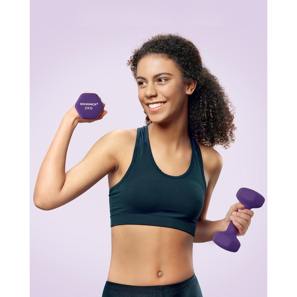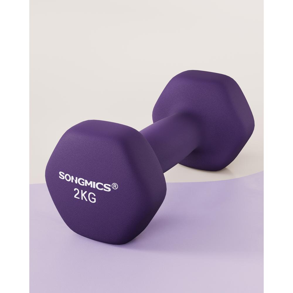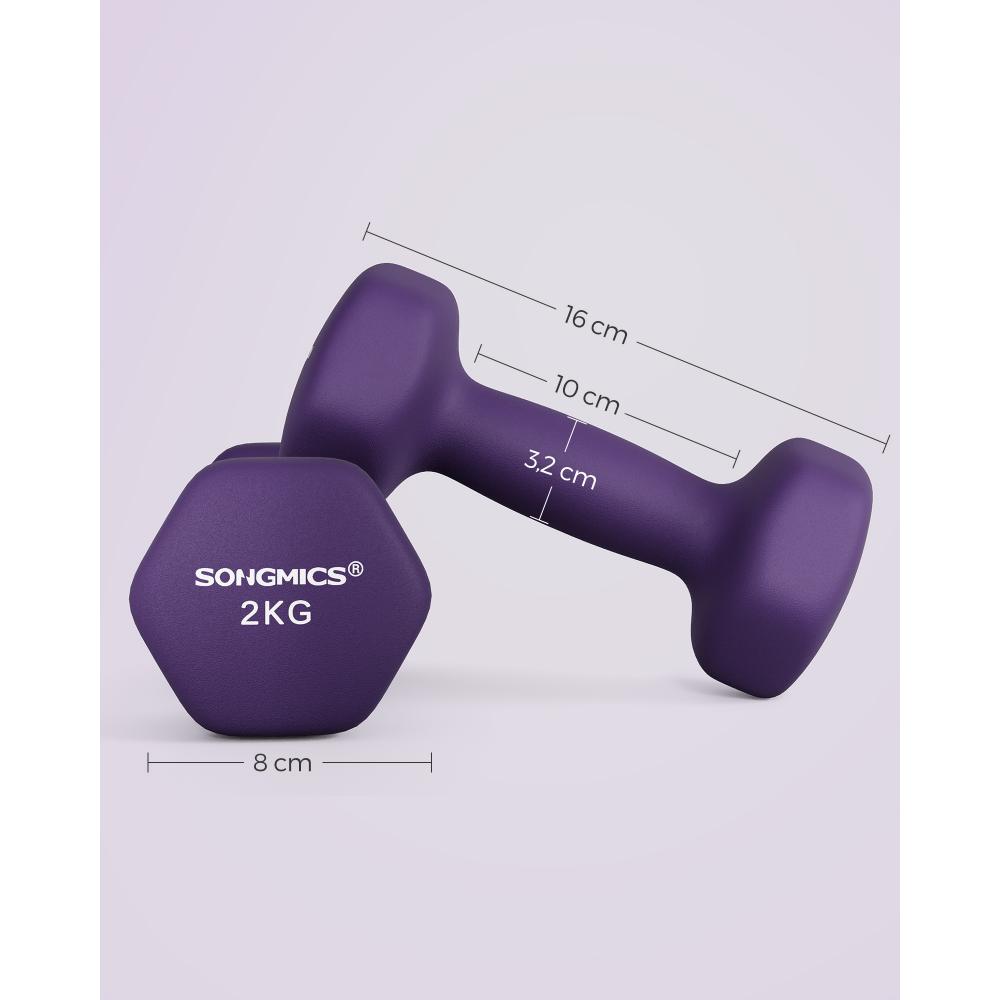 Αναβαθμίστε την προπόνησή σας στο σπίτι με το SONGMICS Set of 2 Dumbbells! Το σετ περιλαμβάνει 2 αλτήρες των 2 kg σε κομψό μωβ χρώμα, ιδανικούς για ασκήσεις τόνωσης, ενδυνάμωσης και cardio.