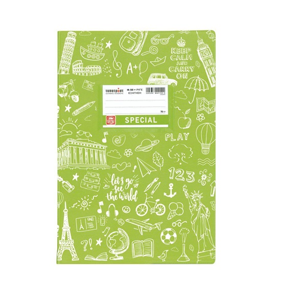Doodle εξήγηση εύκαμπτη με περαστή θήκη. Special Τετράδιο 50 φύλλων, διάστασης B5 (17x25). Το εξώφυλλο είναι χρωματιστό με σχέδια για να ξεχωρίζει το κάθε μάθημα εύκολα. Τα φύλλα είναι από εξαιρετικής ποιότητας χαρτί 70γρ. και η γραμμογράφηση είναι ριγέ με σωστές αποστάσεις. Έχει προεκτυπωμένη ετικέτα 2 όψεων σε ματ χαρτί η οποία βγαίνει εύκολα χάρη στην εγκοπή και στρογγυλεμένες γωνίες. Διατίθεται σε 9 χρώματα (σκούρο μπλε, κόκκινο, πράσινο, μωβ, κίτρινο, πορτοκαλί, λαχανί, φούξια, γαλάζιο), σε πακέτο των 6 τεμαχίων.