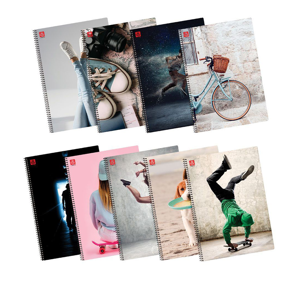 Τετράδιο σπιράλ 4 θεμάτων A4 (21x29,7). Με εξώφυλλο paperboard 350gr. και με σκληρό οπισθόφυλλο για να μπορείς να γράφεις σταθερά. Τα φύλλα είναι από εξαιρετικής ποιότητας χαρτί 70γρ. και η γραμμογράφηση είναι ριγέ. Είναι 4 θεμάτων, με διαχωριστικό για μεγαλύτερη ευκολία. Διατίθεται σε 9 σχέδια, σύμφωνα με τις απαιτήσεις και τις τάσεις της αγοράς. Η συσκευασία είναι ανάμεικτων σχεδίων (τυχαία επιλογή)