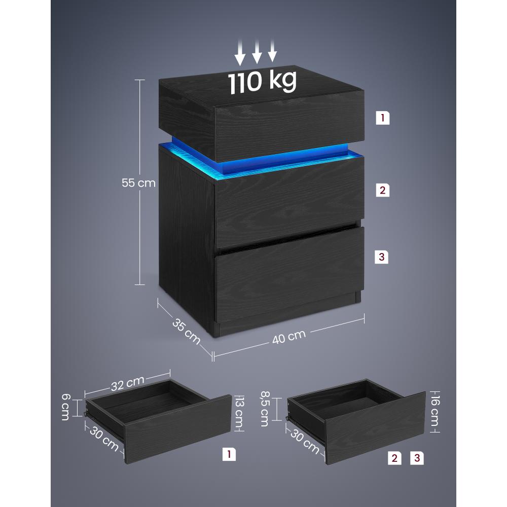 Φωτισμός LED,Μέγιστο βάρος: έως 110 kg,Χρήσεις: Κομοδίνο, βοηθητικό τραπεζάκι, έπιπλο γραφείου |