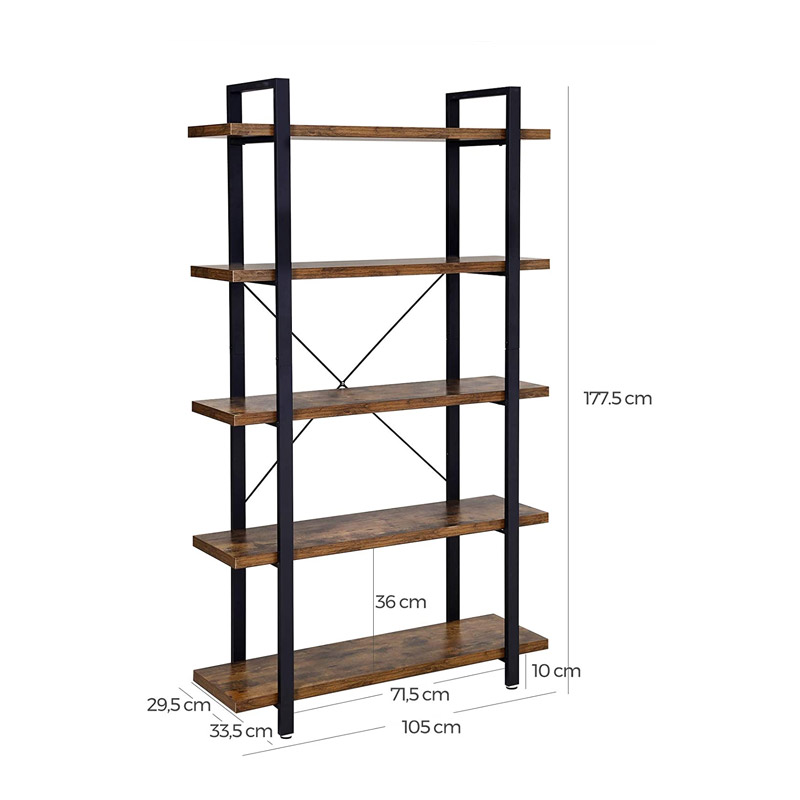 Η ραφιέρα, από την εταιρία VASAGLE, διαθέτει βιομηχανικό σχεδιασμό με μεταλλικό σκελετό από ατσάλι. Έχει 5 ξύλινα ευρύχωρα ράφια και ρυθμιζόμενα πόδια για να προσαρμόζεται σε όλα τα πατώματα. Είναι ιδανική για το σαλόνι, το υπνοδωμάτιο και την κουζίνα.