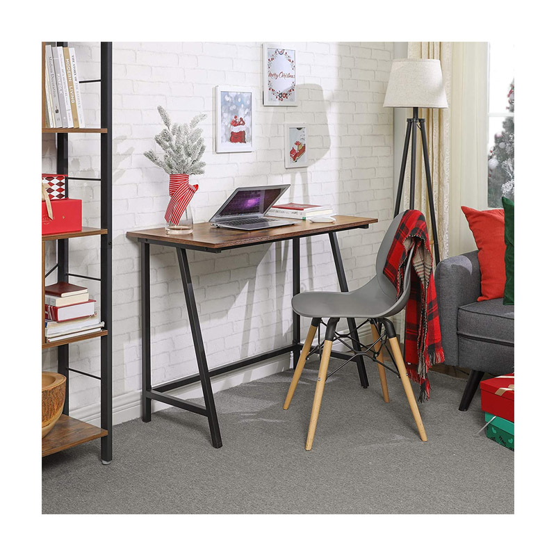 Το γραφείο, από την εταιρία VASAGLE, διαθέτει μεταλλικό σκελετό από ατσάλι και επιφάνεια από μοριοσανίδες σε ρουστίκ καφέ απόχρωση. Είναι αρκετά μεγάλο για να χωρέσει έναν υπολογιστή, εκτυπωτή, βιβλία, ακόμη και λίγο χώρο για φυτά σε γλάστρες. Επίσης, έχει άφθονο χώρο για τα πόδια σας, ενώ μπορεί να χωρέσει εύκολα την καρέκλα από κάτω ή και ένα ντουλάπι αρχειοθέτησης.
