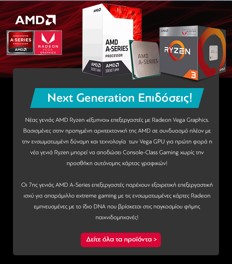 🚀 ΝΕΟΙ AMD Ryzen & AMD A-Series επεξεργαστές ™ με Radeon™ Vega graphics! Ανακάλυψέ τους