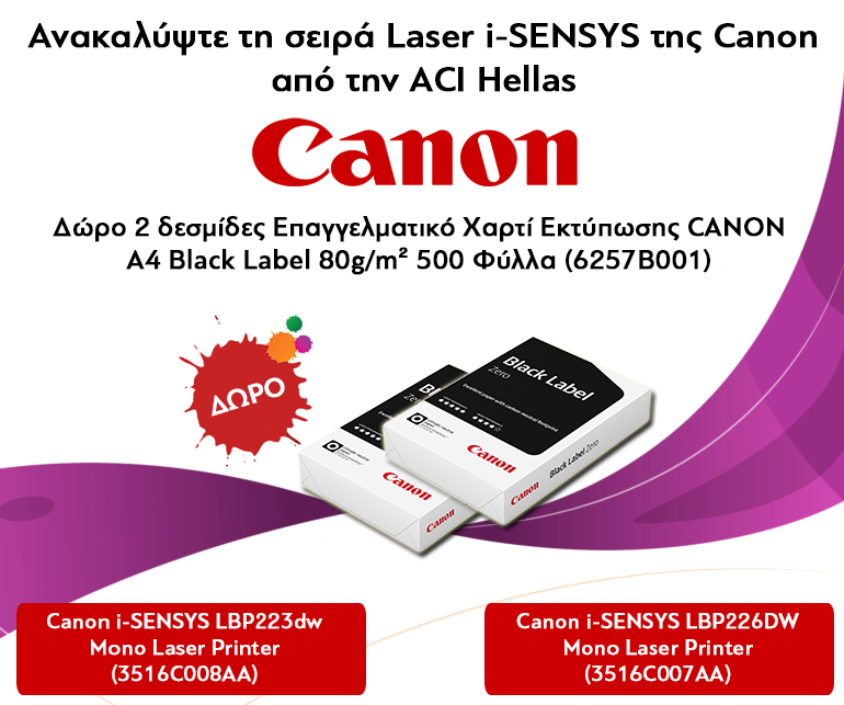 🔝 🎁 Canon Laser i-SENSYS με ΔΩΡΟ 2 δεσμίδες Επαγγελματικό Χαρτί Εκτύπωσης CANON A4 Black Label 80g/m² 500 Φύλλα