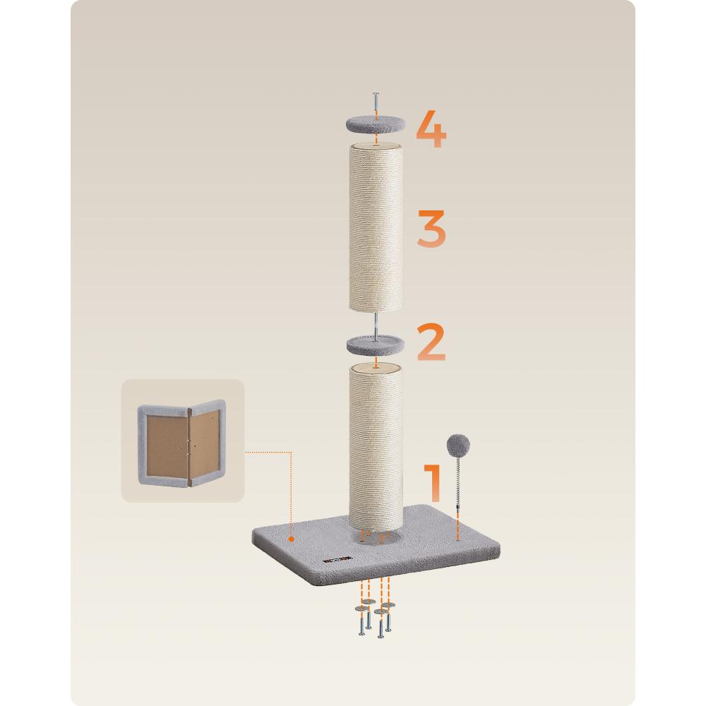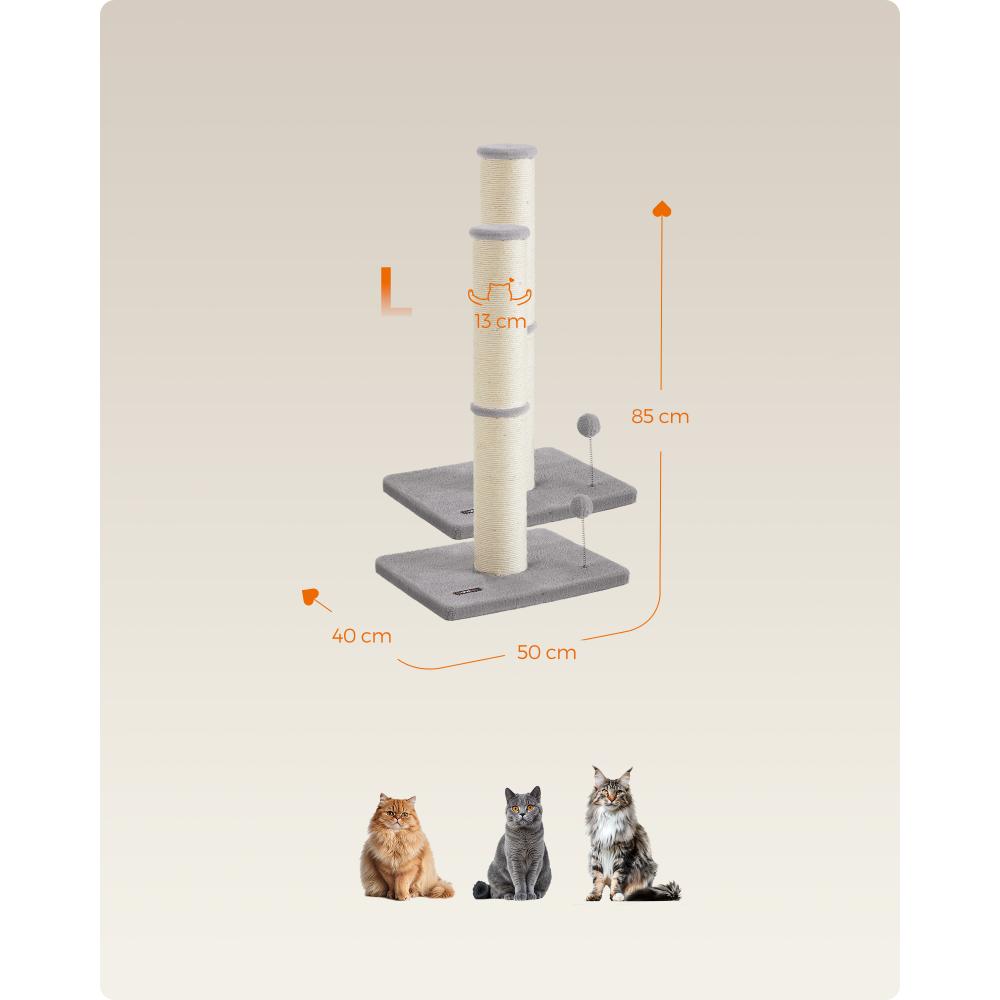 Δώστε στη γάτα σας έναν ιδανικό χώρο για ξύσιμο και παιχνίδι με το Feandrea Cat Scratching Post UPCA041G01. Με ύψος 85 cm (33,5 inches), ανθεκτικό στύλο με φυσικό σχοινί sisal, και διασκεδαστικό ελατήριο με πομ-πομ και κουδουνάκι, προσφέρει ατελείωτη ψυχαγωγία και προστατεύει τα έπιπλα. Κομψό χρώμα Dove Grey για κάθε χώρο.