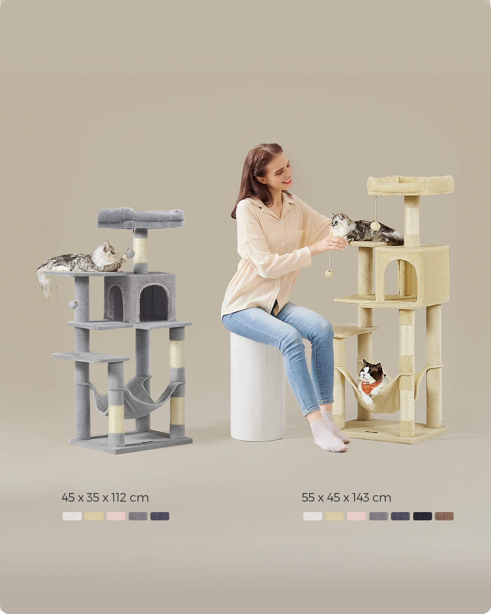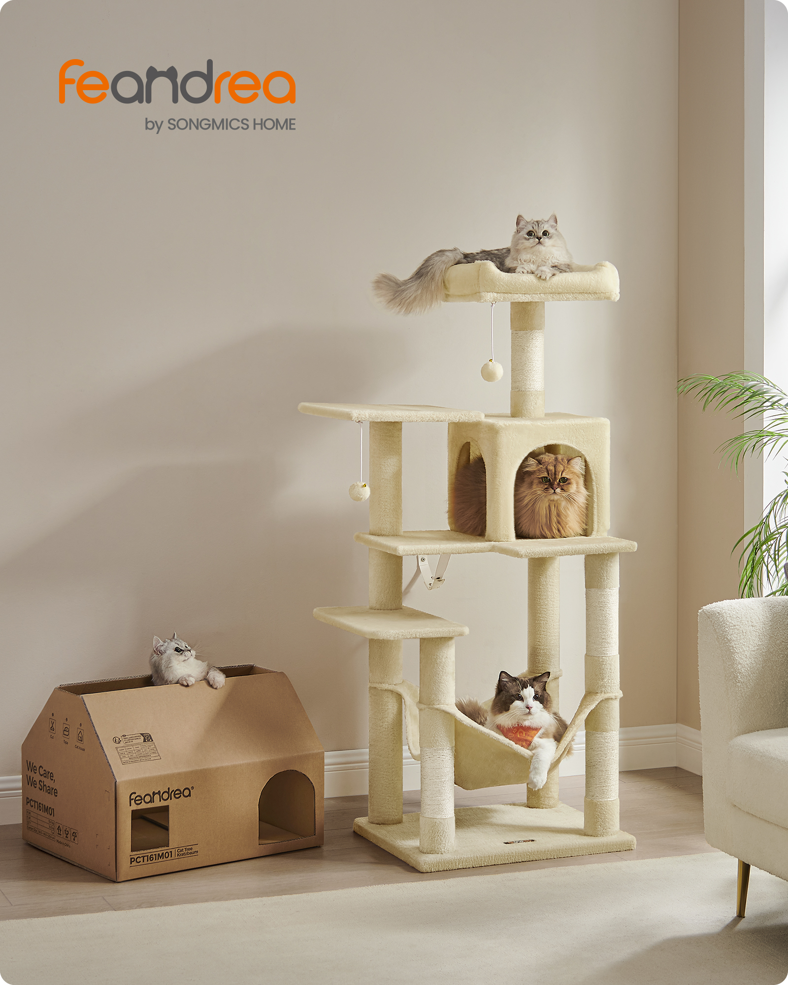 Το Feandrea PCT161M01 είναι ένα κομψό και λειτουργικό δέντρο γάτας, ιδανικό για σπίτια με μία ή περισσότερες γάτες. Προσφέρει πολλαπλά επίπεδα για παιχνίδι, ξεκούραση και ξύσιμο, με σπηλιά, αιώρα και πλατφόρμες. Διαθέτει στήλες με σισάλ για ξύσιμο και κρεμαστά παιχνίδια για ατελείωτη διασκέδαση.