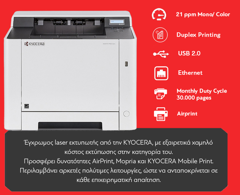 Έγχρωμος Laser Εκτυπωτής Kyocera ECOSYS P5021cdn σε τιμή έκπληξη! Θα προλάβεις;