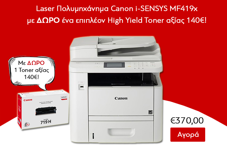 Πολυμηχάνημα Laser Canon i-SENSYS MF419x Mono με ΔΩΡΟ 1 Toner αξίας 90€!