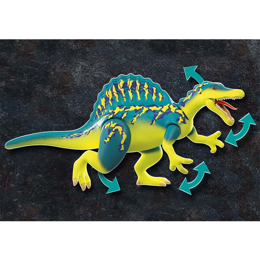 Ο Σπινόσαυρος είναι εξοπλισμένος με κανόνια και με μία πανίσχυρη πανοπλία που αφαιρείται. Η φιγούρα μπορεί να καθήσει πάνω στον δεινόσαυρο. Κατάλληλο για παιδιά ηλικίας από 5+ ετών. Περιεχόμενα συσκευασίας: 46 τεμάχια