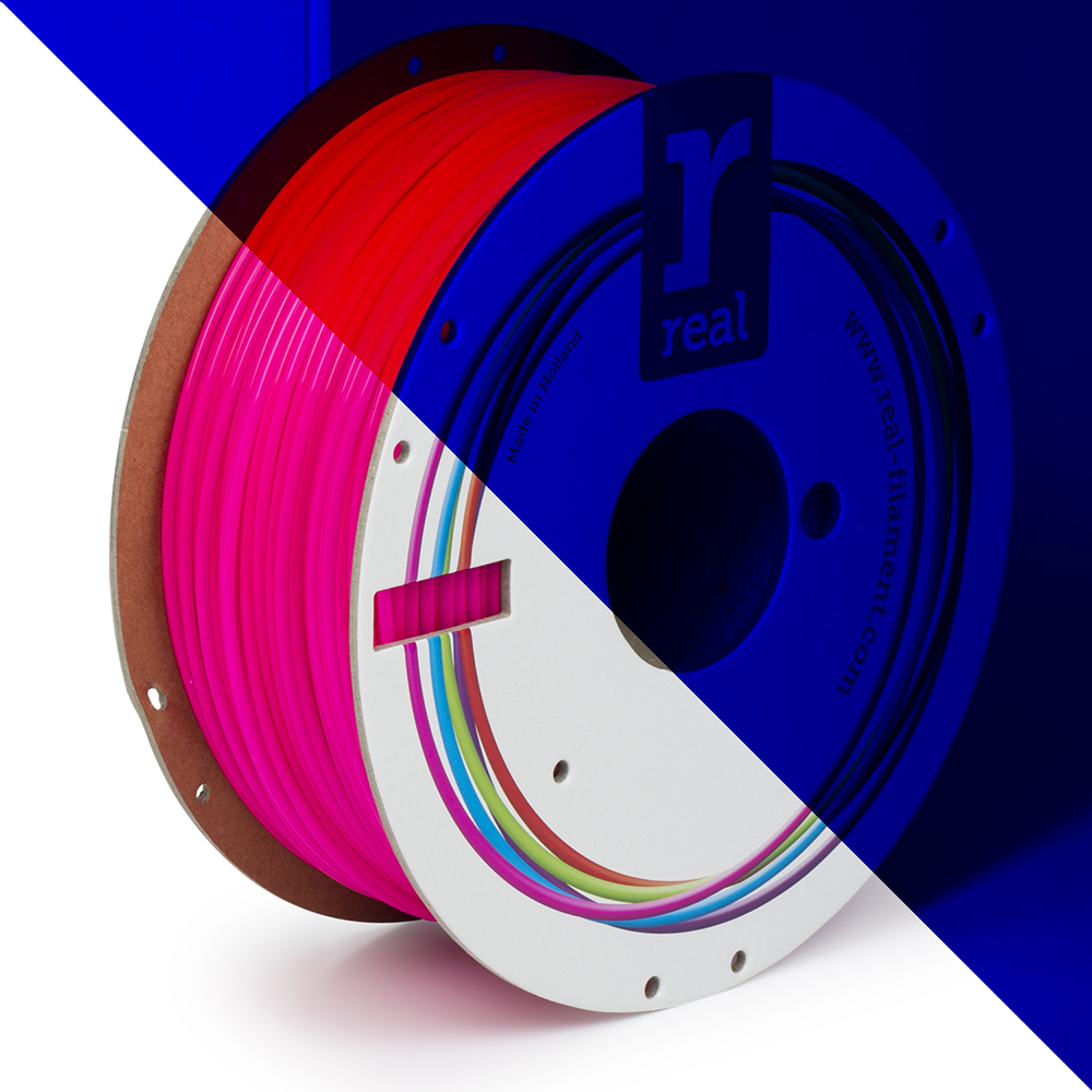 PLA filament Fluorescent Pink 2.85 mm 1000 g for 3D printers is of superior quality, produced in The Netherlands. Real filaments guarantees that the PLA is high-quality and diameter consistent filament, giving you the best 3D printing experience. PLA is great for beginners to 3D printing, but also novices will find it great to use, as it is easy to work with while still give stunning results. PLA filament is available in multiple colors, but also different types are available within the Real brand.