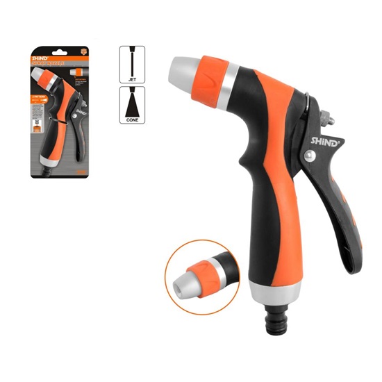 Διαθέτει δύο ρυθμίσεις εκτόξευσης νερού — ψεκασμό και εκτόξευση σε ακτίνα — προσφέροντας ευελιξία για διάφορες ανάγκες ποτίσματος. Η εργονομική λαβή με μοχλό ελέγχου εξασφαλίζει ακριβή διαχείριση ροής νερού και άνεση κατά τη χρήση.
