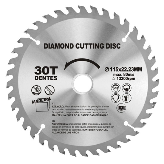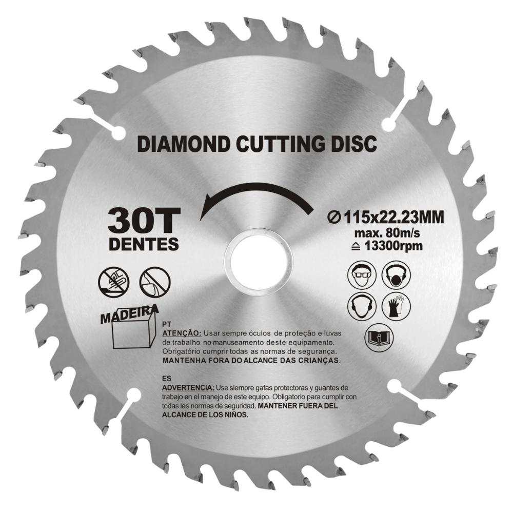 Ο διαμαντοδίσκος κοπής ξύλου Ø115mm Z=30 είναι σχεδιασμένος ειδικά για χρήση με γωνιακούς τροχούς (flex), προσφέροντας ακριβείς και καθαρές κοπές σε ξύλο, MDF, μοριοσανίδες και σύνθετα υλικά. Με διάμετρο 115mm και 30 δόντια (Z=30) με ειδικό προφίλ, εξασφαλίζει λεπτή και ομαλή κοπή, με ελάχιστα σκισίματα και άριστο φινίρισμα.