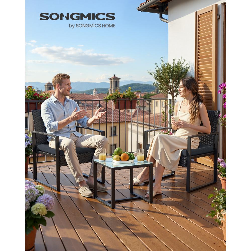 Το SONGMICS GGF010B05 είναι ένα κομψό και άνετο σετ επίπλων μπαλκονιού/κήπου, σχεδιασμένο για να μετατρέψει κάθε μικρό εξωτερικό χώρο σε μια χαλαρωτική όαση. Με μοντέρνα εμφάνιση, ανθεκτική πλέξη PE rattan και μαλακά μαξιλάρια, προσφέρει άνεση, στιβαρότητα και ευκολία συναρμολόγησης — ιδανικό για βεράντες, κήπους, μπαλκόνια ή ακόμη και για εσωτερική χρήση. Είναι το σετ που προσθέτει στυλ, λειτουργικότητα και zen διάθεση στον χώρο σου.