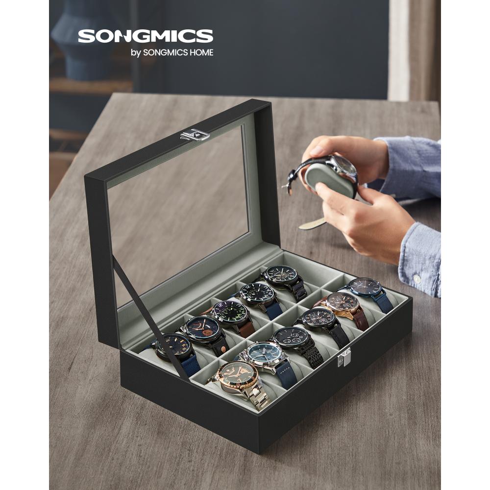 Songmics Watch Box Black 30.2 x 20.2 x 8.1 cm (JWB12BK) (SNGJWB12BK)