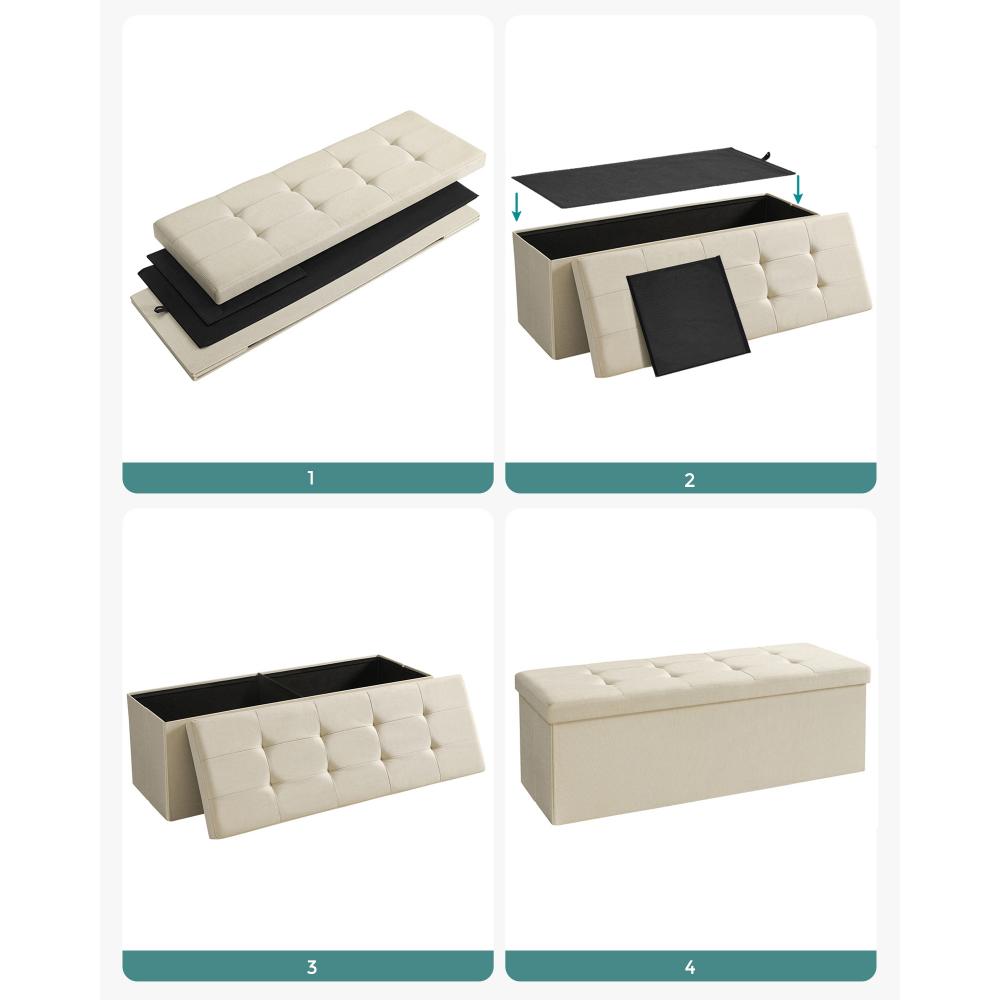 Η στιβαρή κατασκευή του αντέχει έως 300 kg, ενώ η πτυσσόμενη σχεδίαση επιτρέπει εύκολη αποθήκευση όταν δεν χρησιμοποιείται. Το μοντέρνο ύφασμα σε μπεζ χρώμα ταιριάζει σε κάθε διακόσμηση.