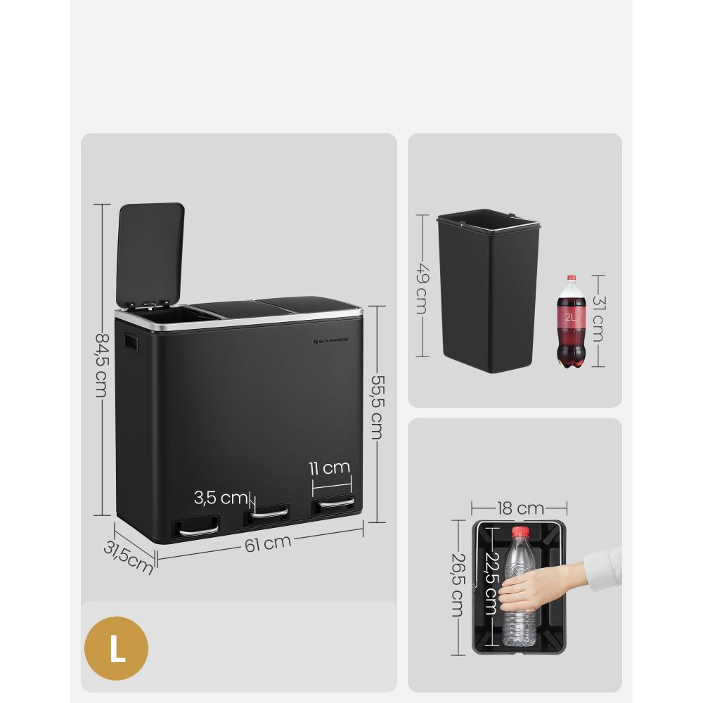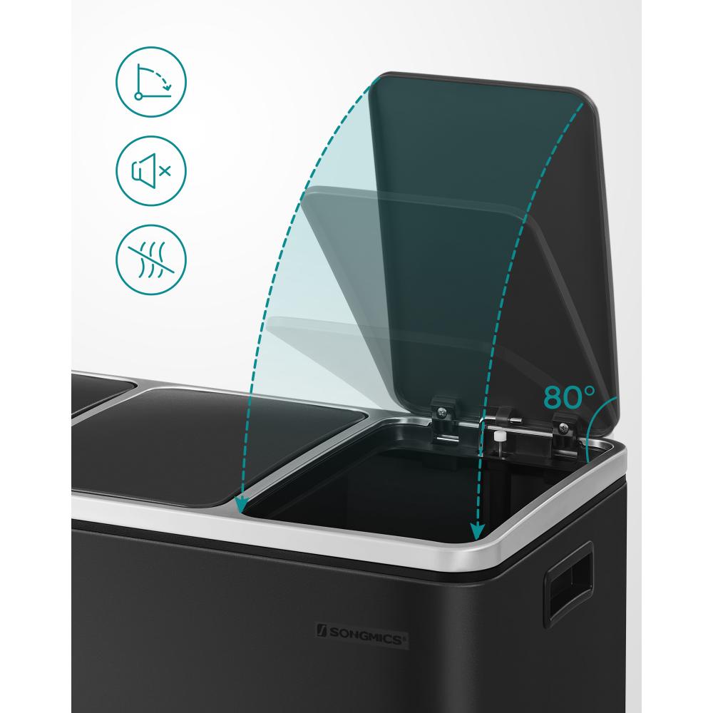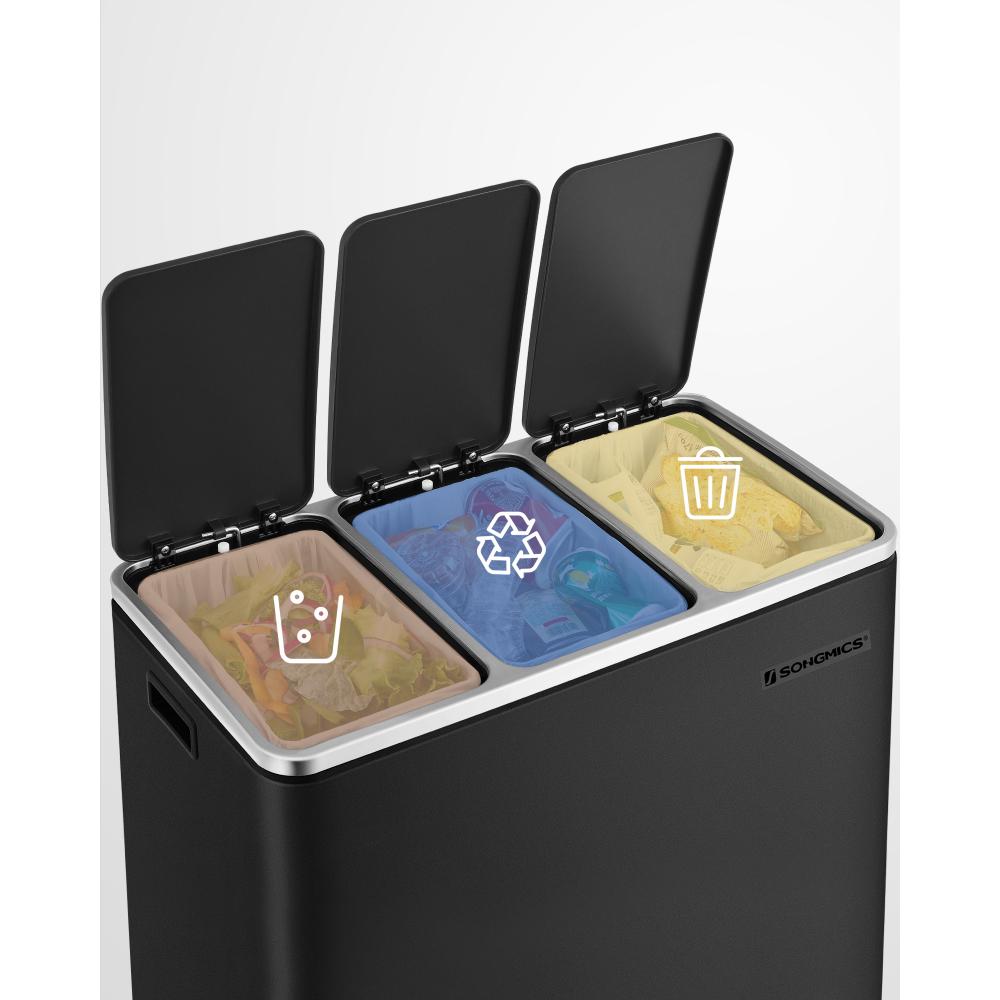 Ο κάδος SONGMICS LTB54BK προσφέρει κορυφαία λύση για διαχωρισμό απορριμμάτων στην κουζίνα σας. Με τρία ευρύχωρα δοχεία των 18 λίτρων, ανοξείδωτη κατασκευή και πεντάλ για κάθε τμήμα, εξασφαλίζει υγιεινή χρήση χωρίς χέρια και άψογη οργάνωση.