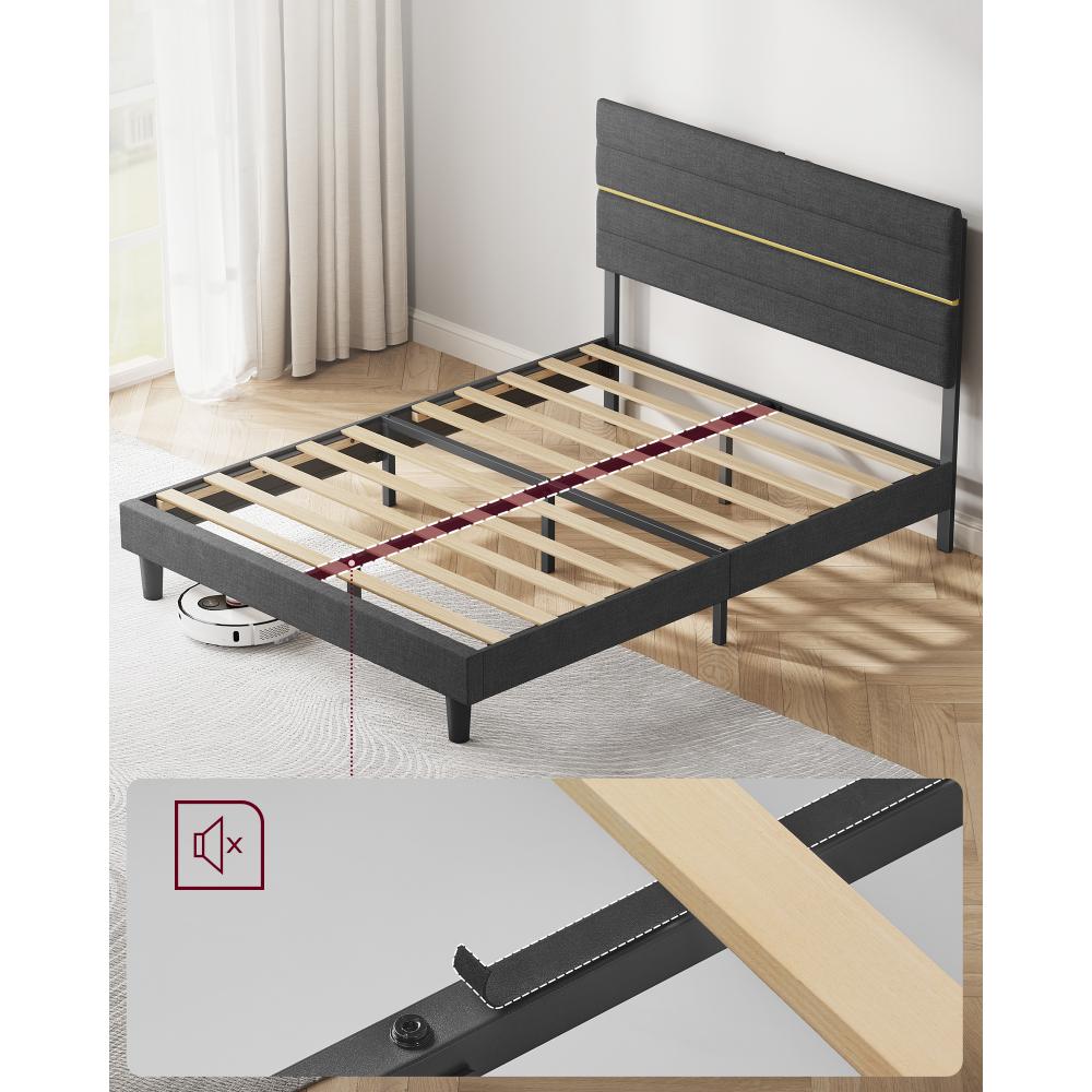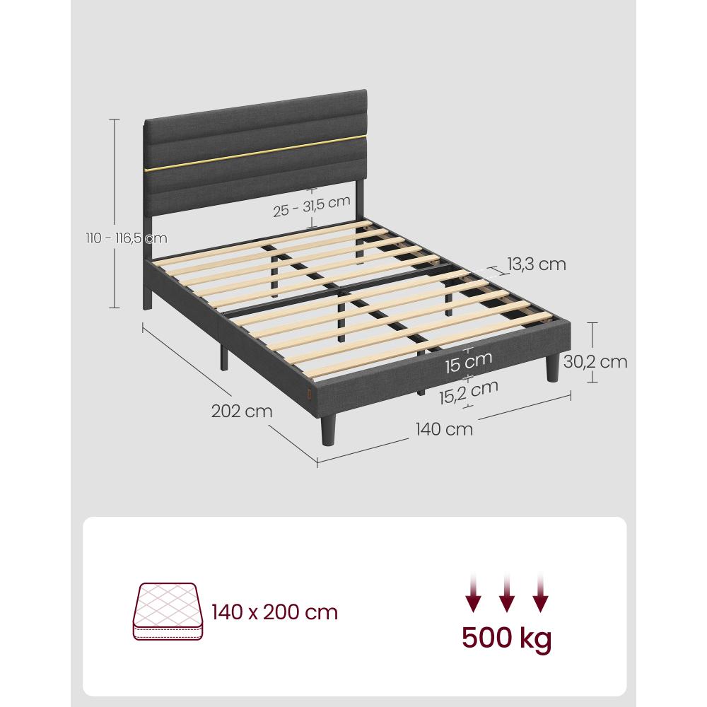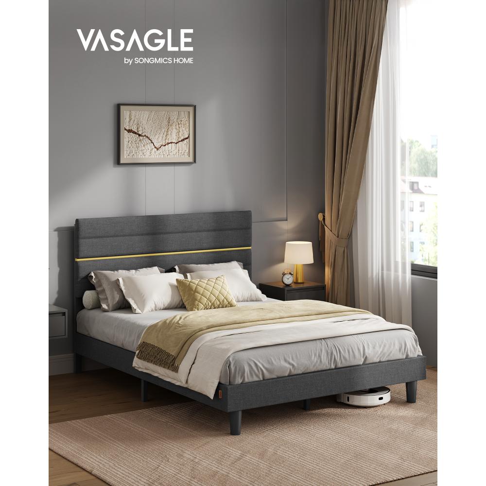 ΤΤο VASAGLE RMB504G01 είναι ένα κομψό και σταθερό διπλό κρεβάτι για στρώμα 140×200 cm, με μοντέρνα υφασμάτινη επενδυμένη κεφαλάρι και στιβαρή μεταλλική κατασκευή. Συνδυάζει άνεση, αισθητική και υψηλή αντοχή, ιδανικό για υπνοδωμάτια που θέλουν λειτουργικότητα και premium εμφάνιση.