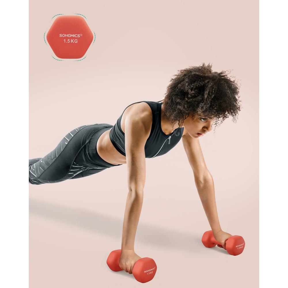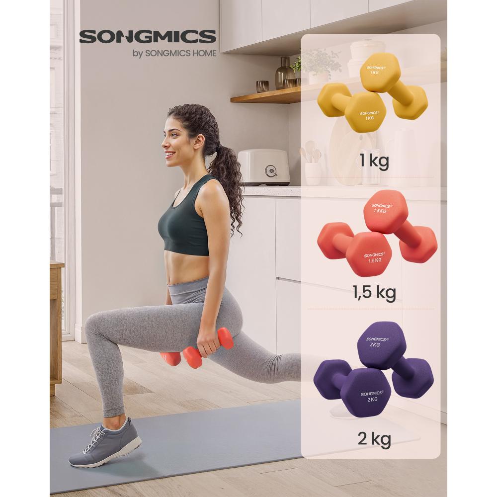 Αναβαθμίστε τη γυμναστική σας στο σπίτι με το SONGMICS Hex Dumbbells Set με Βάση! Το σετ περιλαμβάνει 3 ζεύγη αλτήρων (1 kg, 1.5 kg, 2 kg) σε ζωηρά χρώματα Yellow, Orange και Purple, προσφέροντας ποικιλία βαρών για διαφορετικά επίπεδα άσκησης.