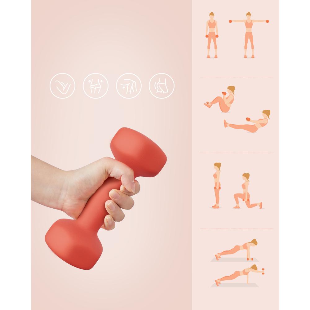 Η αντιολισθητική επίστρωση νεοπρενίου εξασφαλίζει άνετο και ασφαλές κράτημα, ενώ το εξάγωνο σχήμα αποτρέπει την κύλιση στο πάτωμα. Η πρακτική βάση οργανώνει τους αλτήρες και εξοικονομεί χώρο, ιδανική για μικρά σπίτια ή γραφεία.