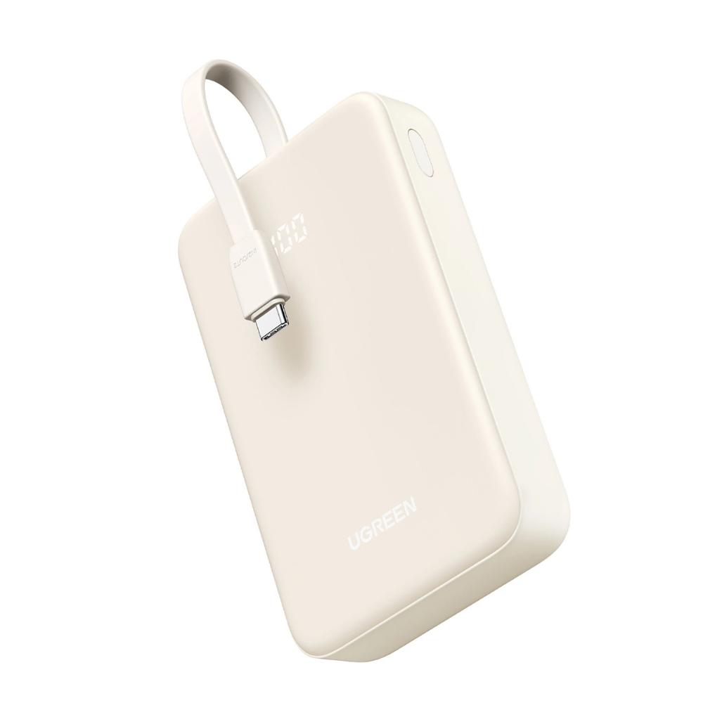 Powerbank Ugreen PB505 με χωρητικότητα 20000 mAh, ισχύ 22.5W, με θύρες USB-C και USB-A και ενσωματωμένο καλώδιο USB-C - λευκό.