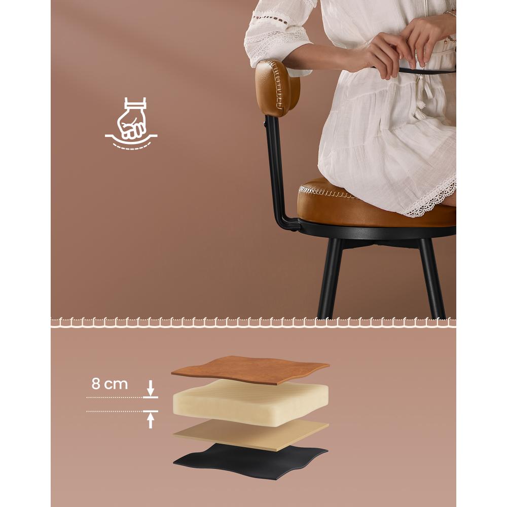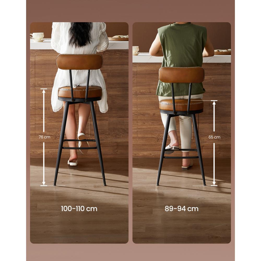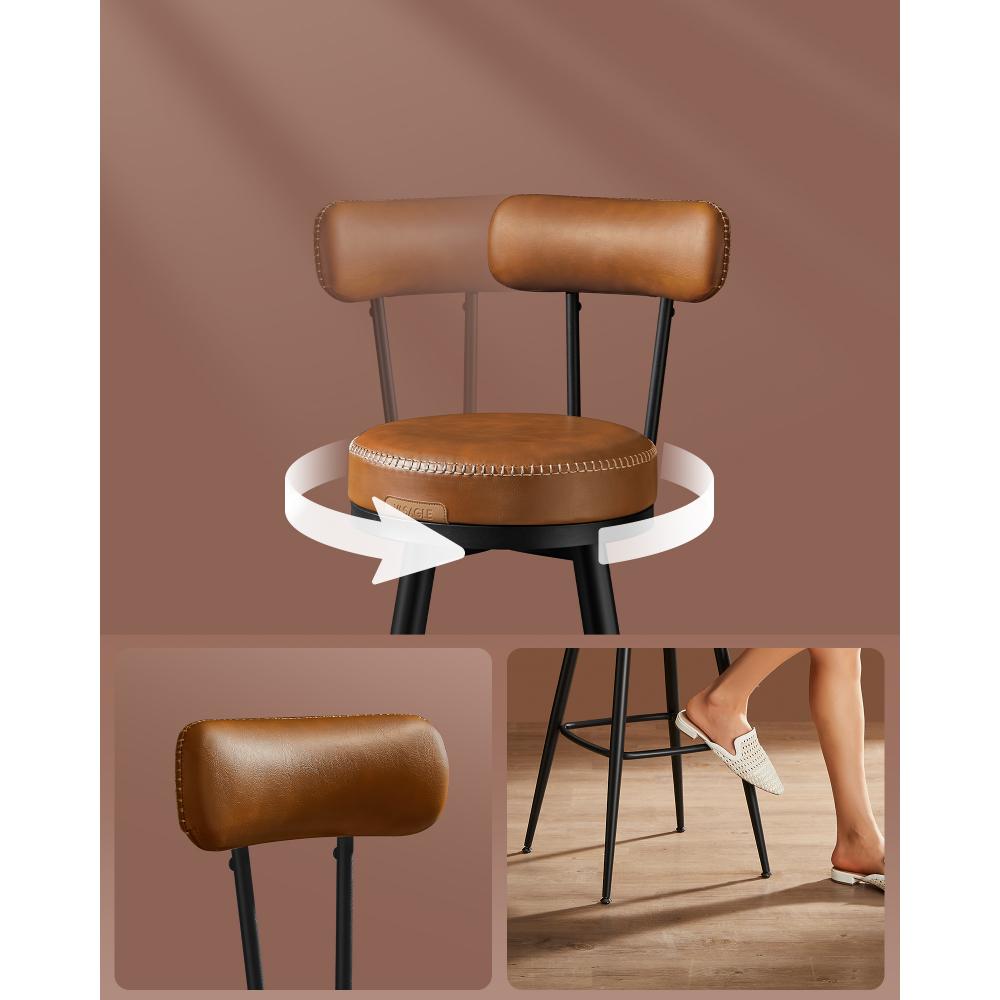 Αναβαθμίστε τον χώρο της κουζίνας ή του home bar σας με το VASAGLE EKHO Collection Bar Stools Set. Με κομψό mid-century modern design, επένδυση από συνθετικό δέρμα με ραφές και ζεστή απόχρωση Caramel Brown, αυτά τα σκαμπό προσφέρουν άνεση και στυλ. Η δυνατότητα περιστροφής 360° και το εργονομικό κάθισμα με πλάτη εξασφαλίζουν ευκολία και άνεση σε κάθε χρήση. Ιδανικά για πάγκους κουζίνας και μπαρ.εχνικά Χαρακτηριστικά