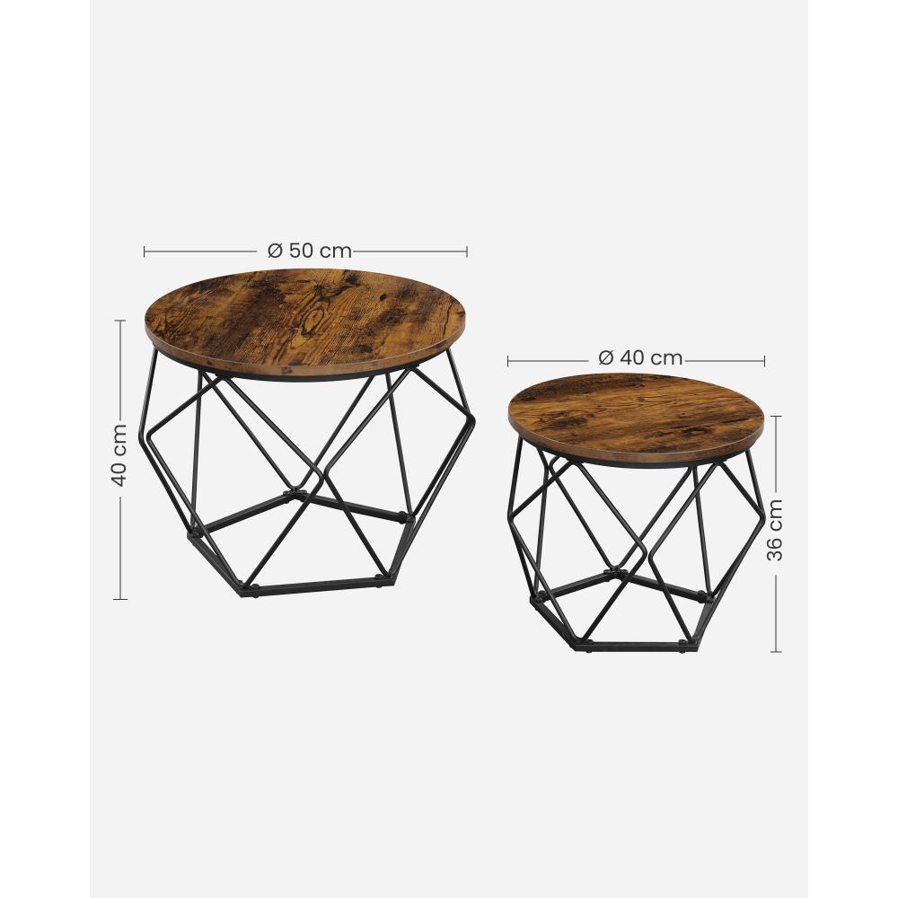 Το σετ τραπεζιών VASAGLE LET040B01 συνδυάζει κομψότητα και πρακτικότητα με βιομηχανικό design. Με επιφάνεια σε rustic brown και στιβαρό μεταλλικό σκελετό, αυτά τα τραπέζια προσφέρουν στυλ και λειτουργικότητα για κάθε χώρο.