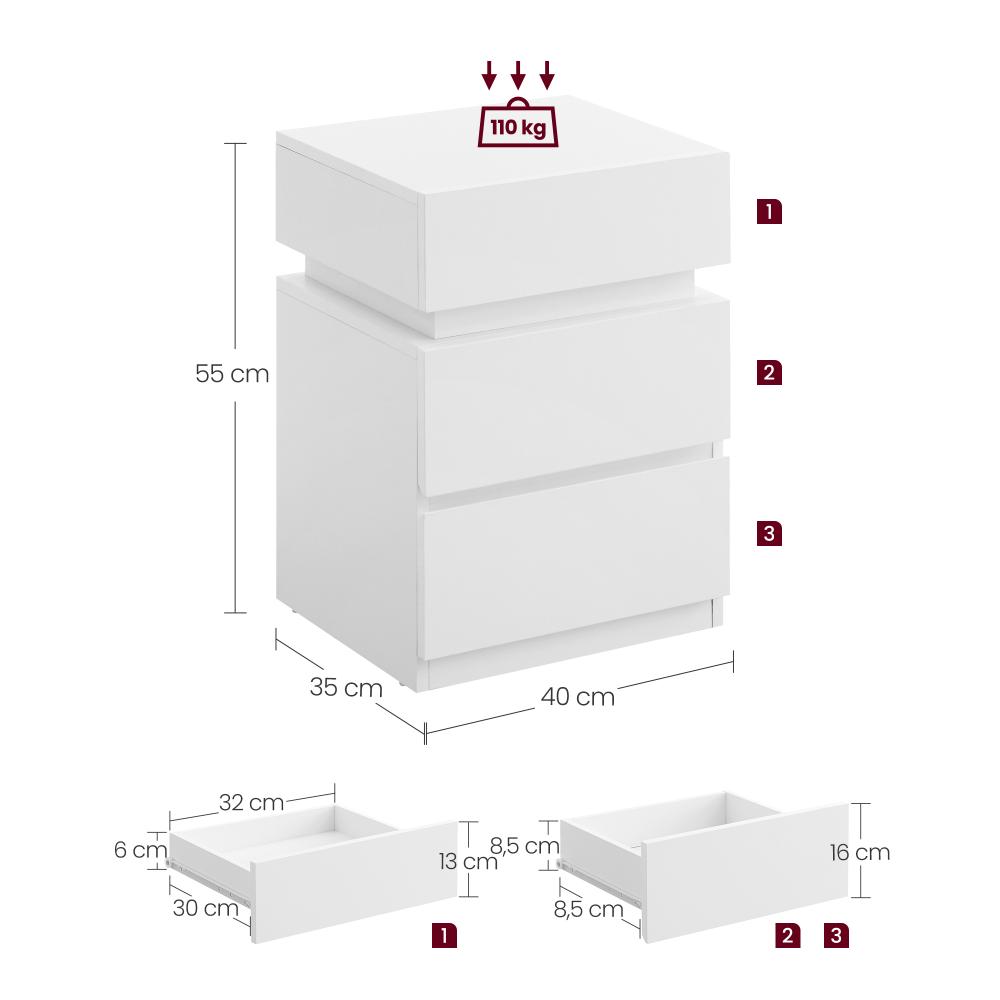 Φωτισμός LED,Μέγιστο βάρος: έως 110 kg,Χρήσεις: Κομοδίνο, βοηθητικό τραπεζάκι, έπιπλο γραφείου |